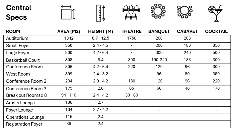 The modern auditorium presents a dramatic space, complemented by state-of-the-art audio-visual, featuring over 100m2 of LED panels, plus lighting and sound to match. This truly is a platform for a memorable event.
